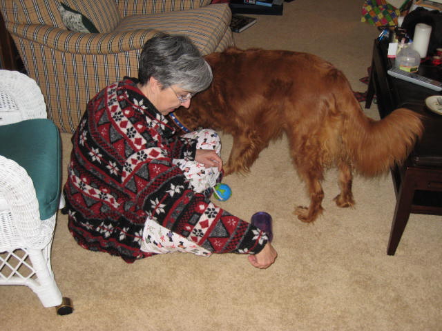 Christmas_2007 -- Dot playing with Yogi's new toys